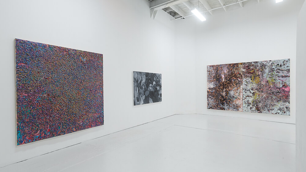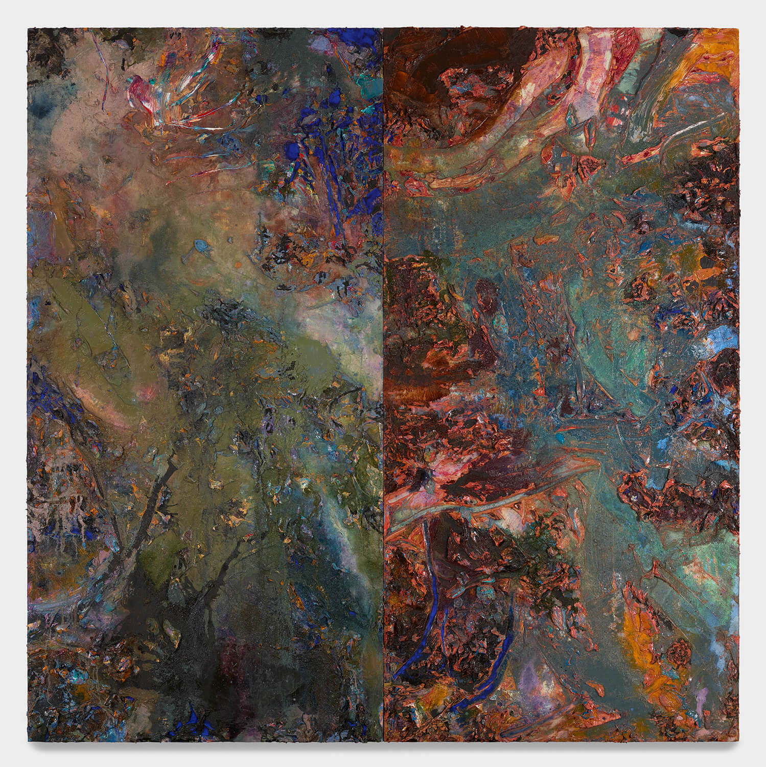 “The paintings exist in the world as a real thing. Not as a reflection of the world, and also not as a symbol of meaning. The paintings assert themselves through their own material presence. They’re of the same order and the same logic of the world that holds them. Their reality is shaped at the convergence of both matter and attention. The thinking and doing collapse into one. Each thought is a mark. Each mark is a thought. The thinking is coinciding with the material engagement. A thought holds shape. A thought also carries weight. A mark is an extension of consciousness. A mark is also another way to experience presence. The painting becomes by a continuous field of thinking in and with the material. With matter. The surface is the accumulation of each moment. The surface remains active. Areas will flake away. Skins develop. Protrusions form. Within this frame, seeing and thinking also collapse into one. Time here is durational. On the surface, both the past and present exist as a continuum. The form of the painting is the record of its temporal depth. It is the embodiment of lived attention. These paintings hold their own weight. They have their own time. They have their own border. They have their own gravity. They stand in the world not of something, but as something. They’re not about the world, but they are firmly placed within the world.” — Gabriel Mills