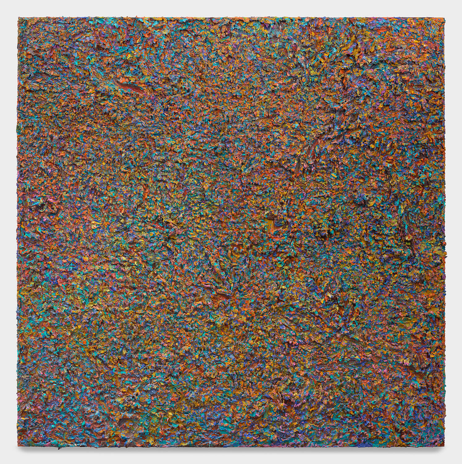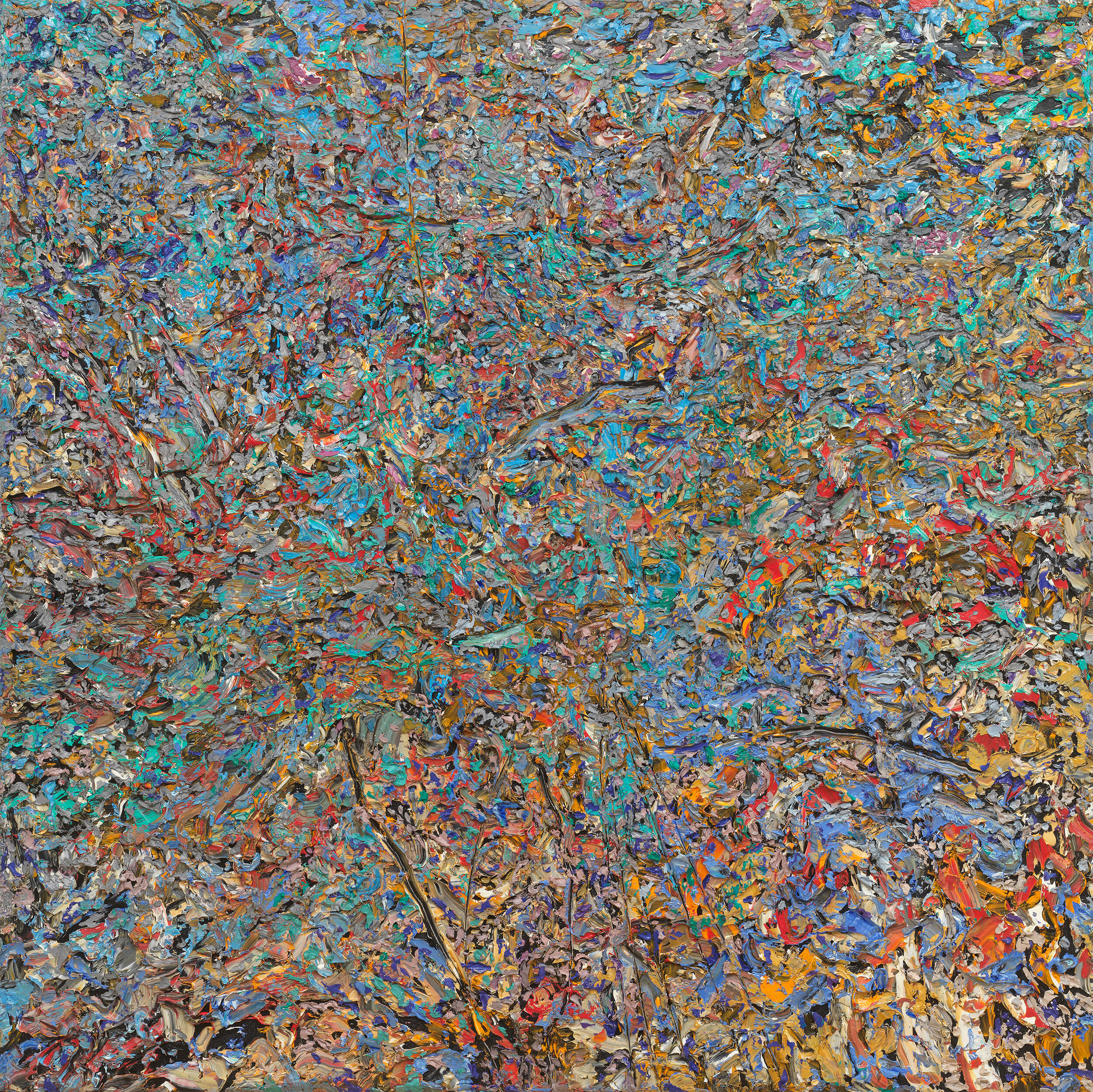 Gabriel Mills’s (b. 1992, New Rochelle, NY) paintings standalone as a temporal record of the past and present. They manifest in various forms, reflecting the artist’s embrace of a self that contains multitudes. Mills stated: “Each mark is a thought, each thought is a mark. Painting is an extension and affirmation of my being.” The act of painting becomes symbolic through layering and erasure. His densely layered oil paintings, for instance, feature textured, topographical surfaces that strike a balance between atmosphere and materiality, evoking both the celestial and terrestrial. From a linguistic game he developed while working as a security guard at the Metropolitan Museum of Art, he constructs his unique titles by rearranging words based on their formal properties. This exploration of language parallels his artistic process, as he continuously builds and revises in a gesture of deep reflection.