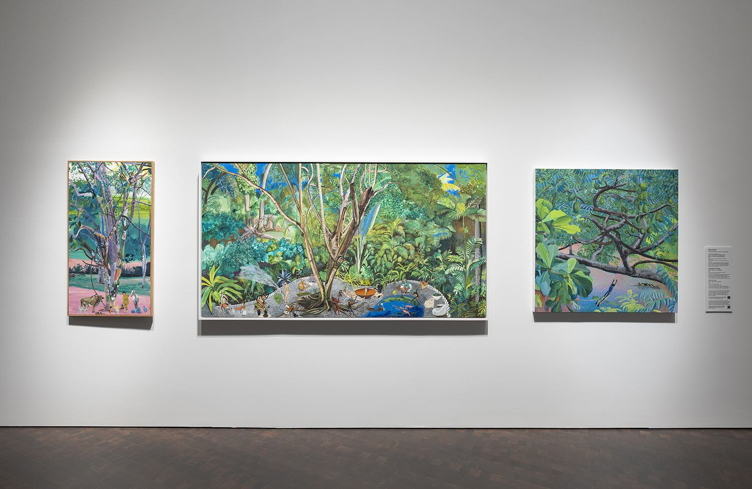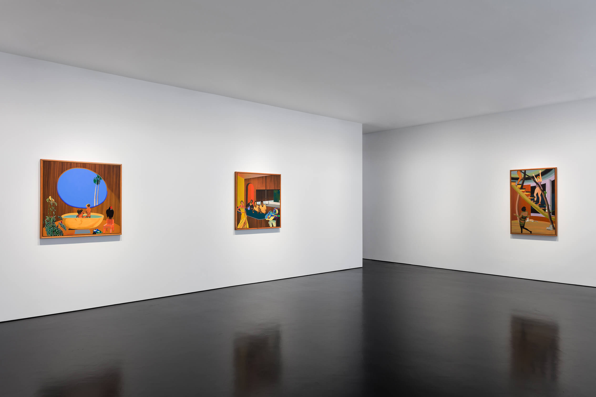 The second show at this new gallery, helmed by a third-generation art dealer, impresses with a trio of exciting painters. Guzmán, who is from the Dominican Republic, paints intricate vistas that nod to Mexican folk art. In “wednesday morning,” an expanse of tropical foliage canopies a crisply detailed scene of tiny figures, some human and others mythic.