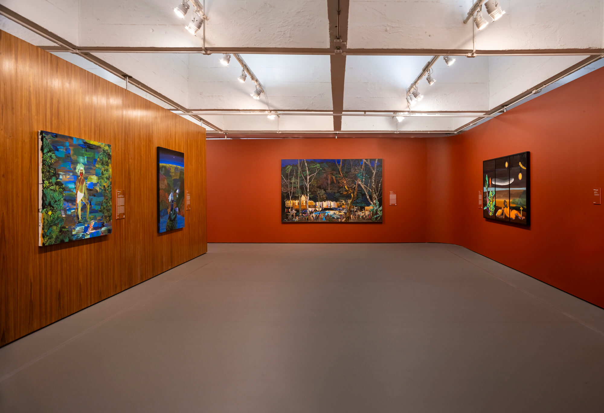 Across the exhibition, the styles of the different pieces are disparate. From the flat geometrics of [Tunji] Adeniyi-Jones to the tenderly rendered narrative work of Tajh Rust, the detailed surrealist nature of Hulda Guzmán’s painting versus the ephemeral quality of Katherine Bradford’s figures, there is no single aesthetic cohesion. This variety is far preferable, however, to the monotone quality which so often plagues AI-rendered images.