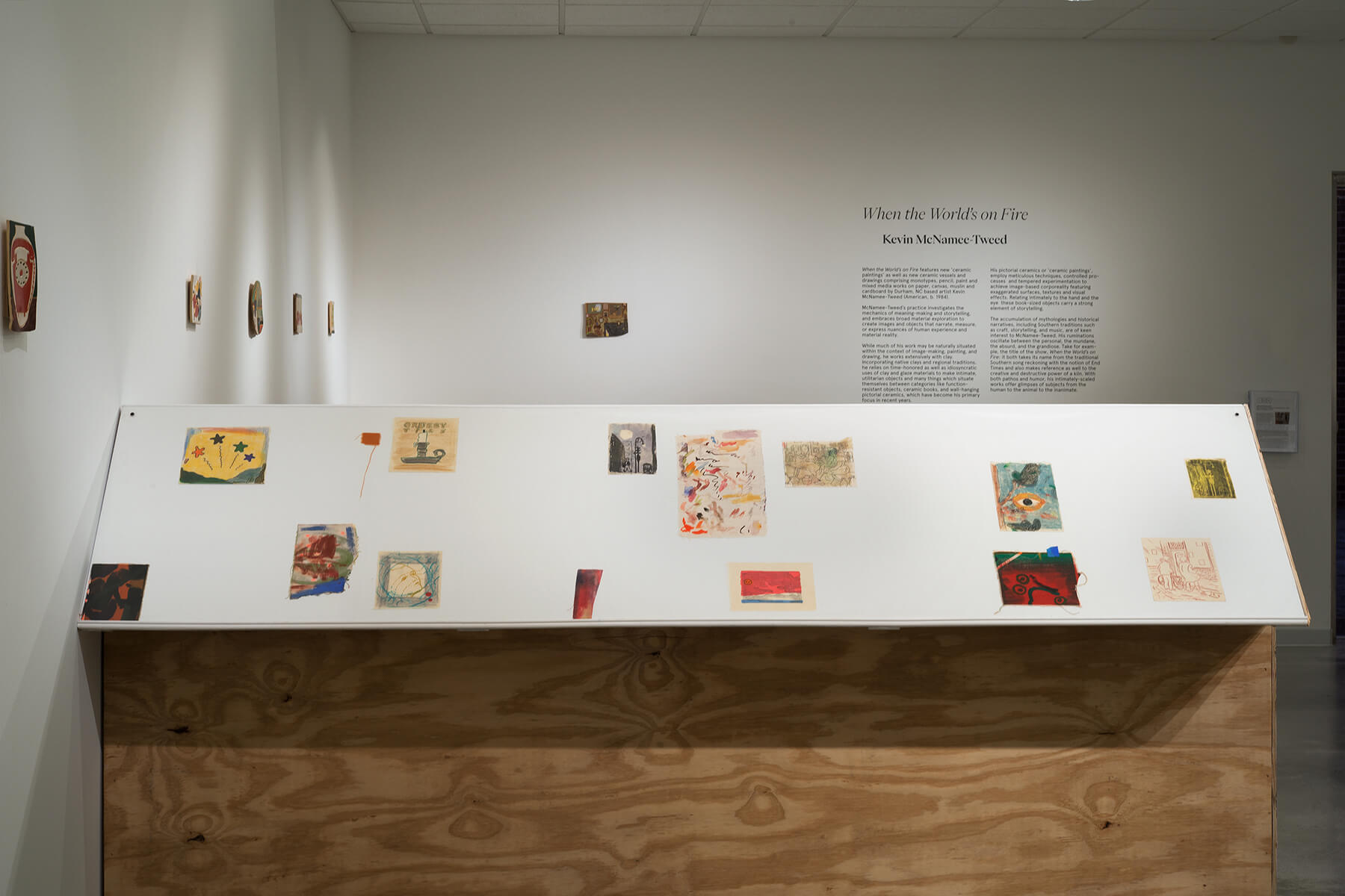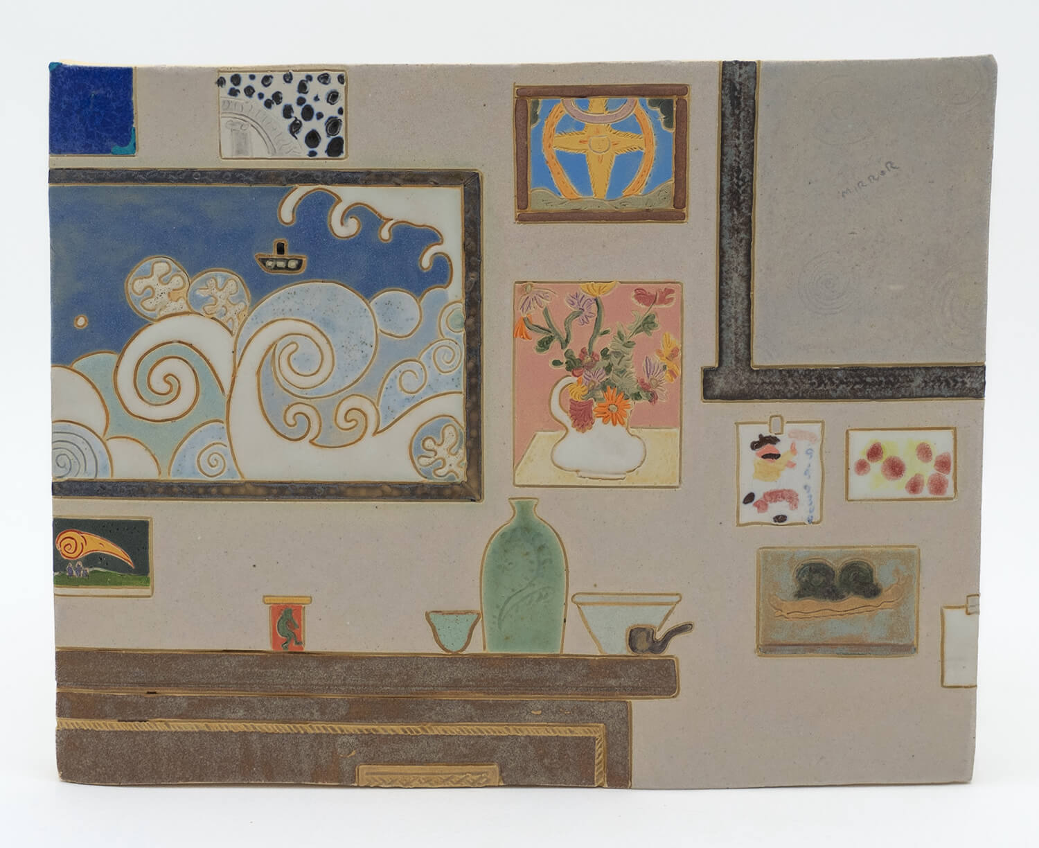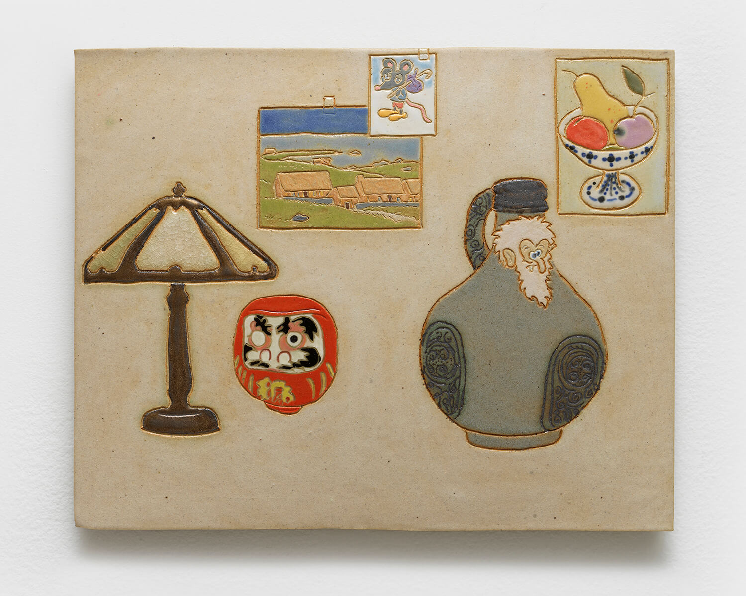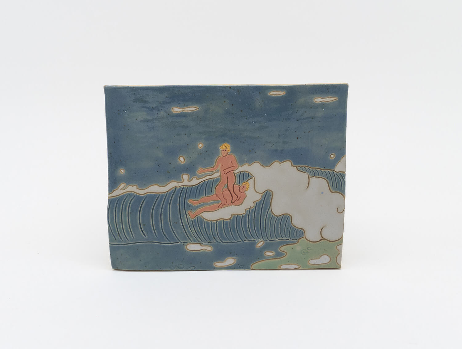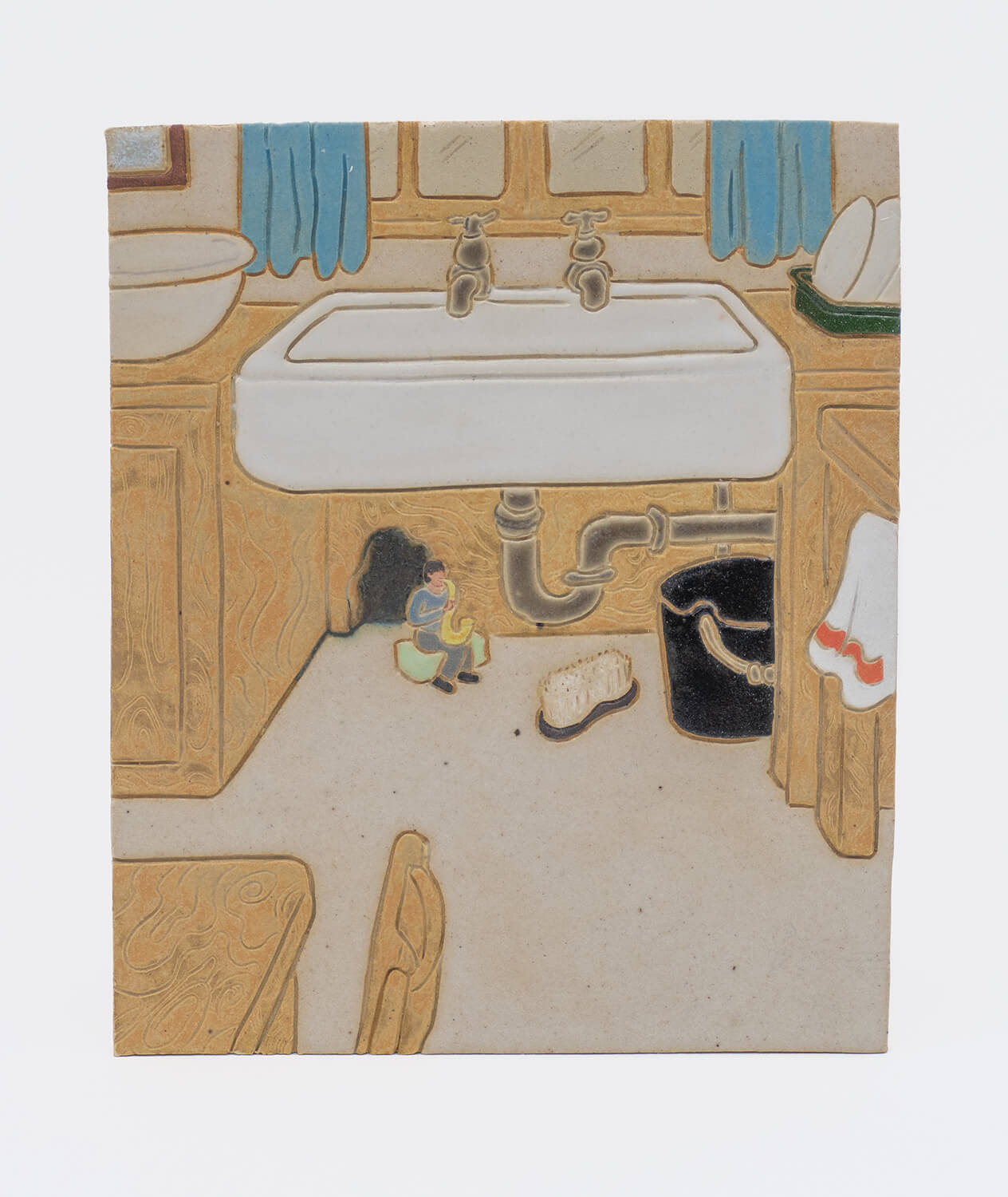 Kevin McNamee-Tweed (b. 1984, Stanford, CA) explores the construction of meaning and the ways stories are formed, transmitted, and transformed through ceramics and works on paper. The artist’s pictorial ceramics—often described as “ceramic paintings”— invite close viewing, fostering intimacy through handcrafted detail and narrative density, often infused with pathos, humor, and a persistent curiosity about the world. To assemble his playful, rigorous, and deeply considered visual language, he draws from a wide range of sources. Repeated motifs are mined from art history as well as the textures and symbols of everyday life. Material inquiry and sustained experimentation drive his mark- and image-making, most notably through clay and glaze.