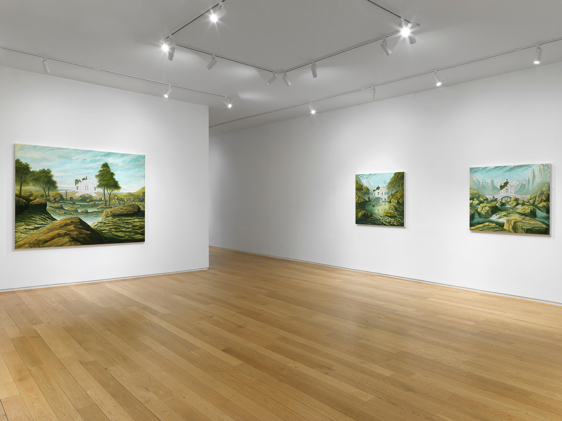 “Three contemporary artists whose work probe depictions of time and space are on view in a group show at Alexander Berggruen on Madison Avenue. Each artist’s approach to depicting environments appear to be inspired by Surrealism, with distorted landscapes and tilted perspectives that challenge the viewer.”