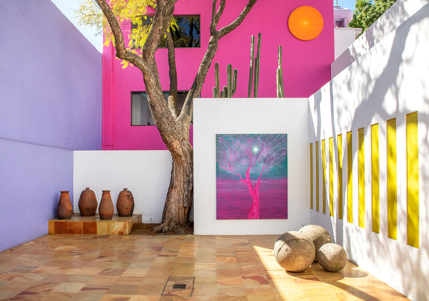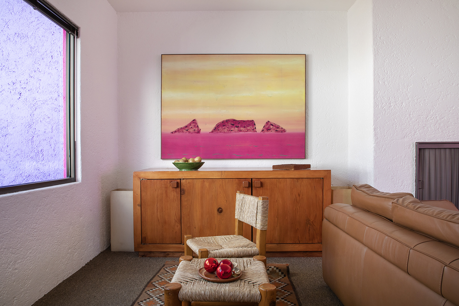 Presenting a selection of 13 new paintings in “Spirit of Hope—Sueños Diurnos,” the Mexico City and Istanbul-based artist’s second solo show with the gallery, his use of vibrant, saturated colors (pinks, yellows, and deep blues) directly pays homage to the pigmented walls found in Barragán’s work. His paintings often blend natural landscapes with the urban environments of cities he’s lived in, including Mexico City, New York, Los Angeles, and Istanbul—these current canvases were created in the same Coyoacán neighborhood where Diego Rivera and Frida Kahlo once worked. Trained as an architect, Vera uses light and color to evoke spiritual serenity in physical structures, creating metaphysical spaces that invite viewers to pause and reflect.