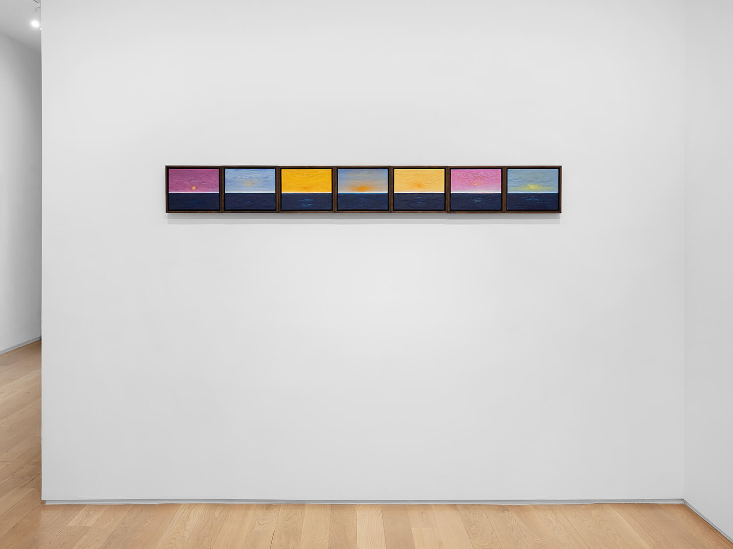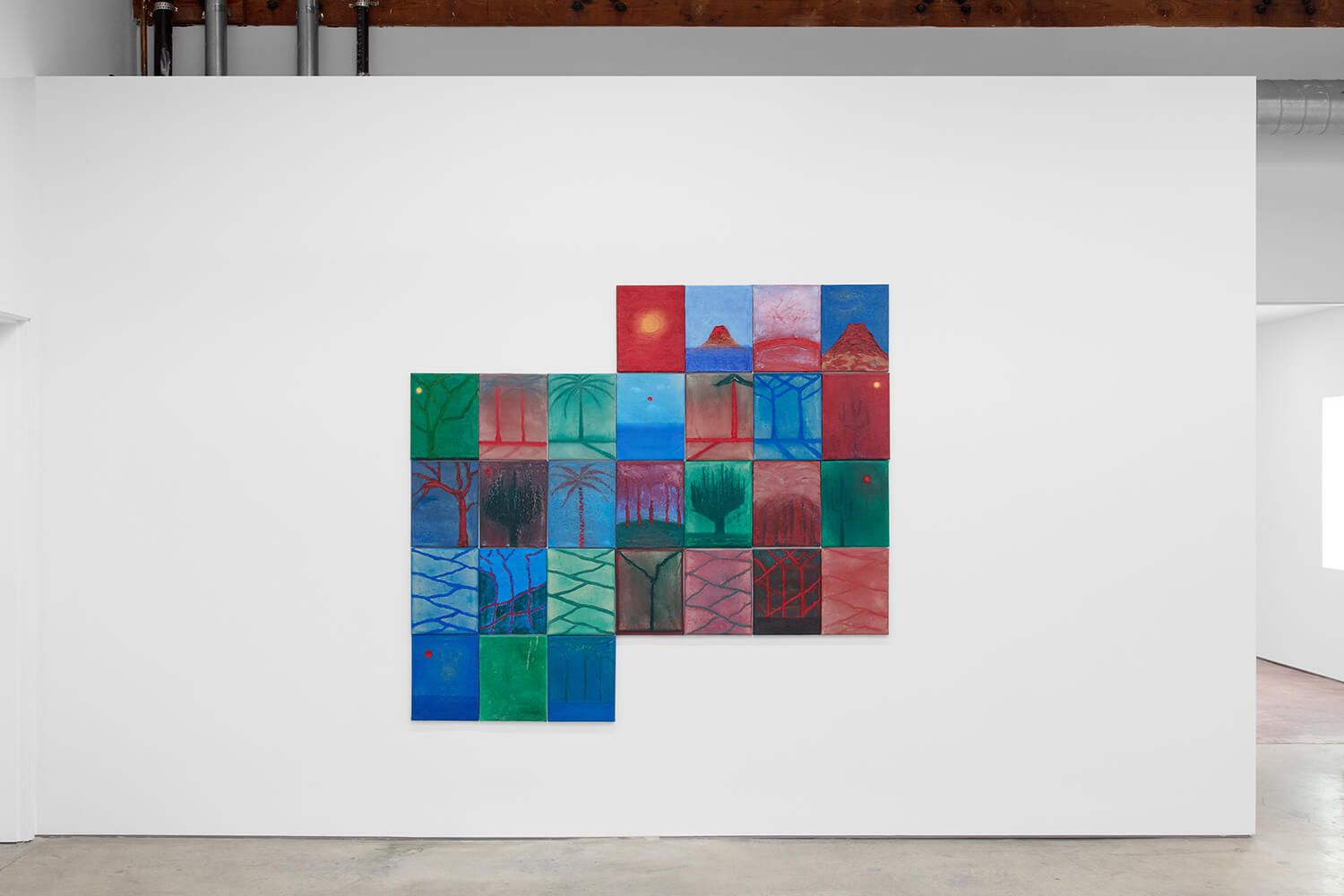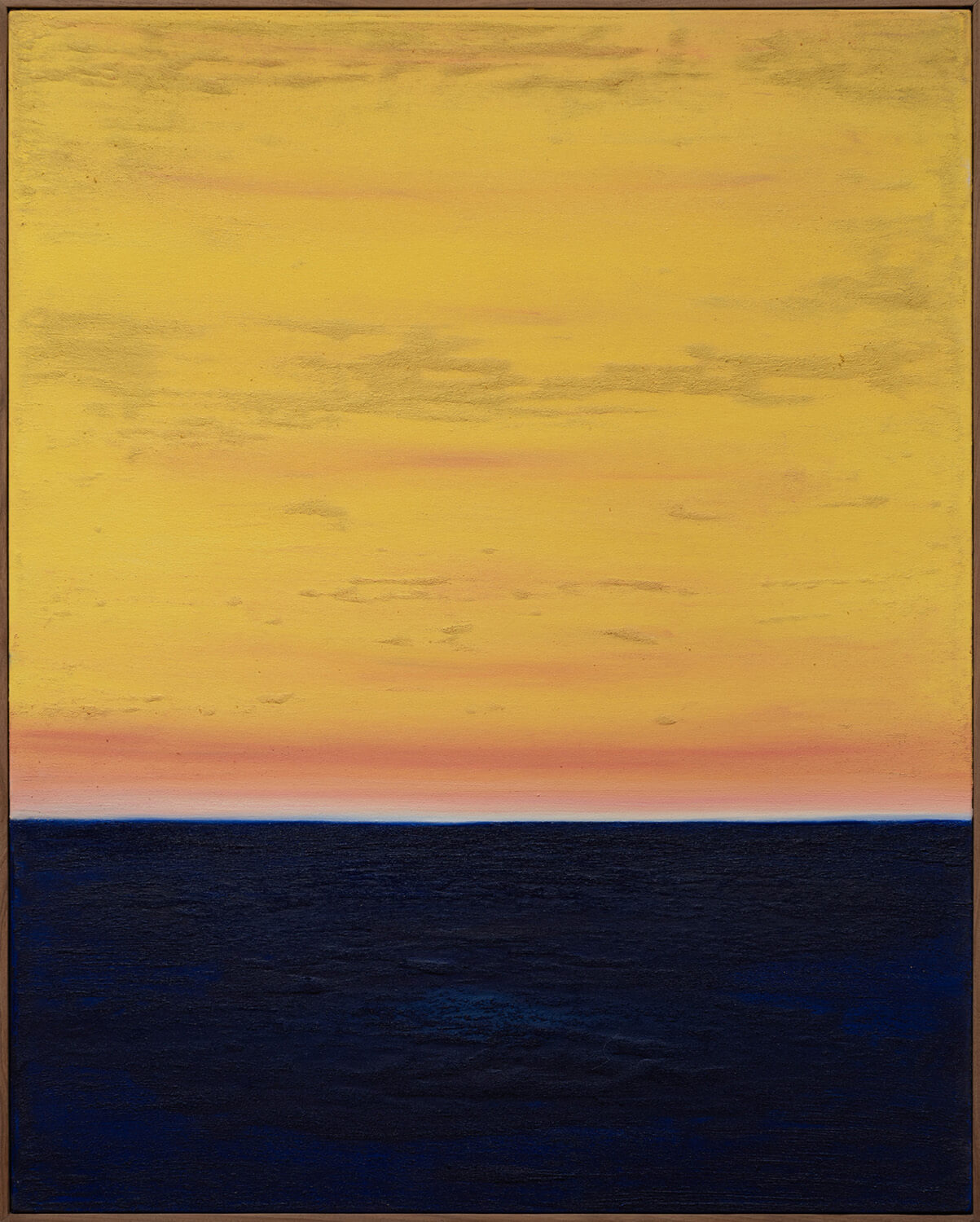 Yoab Vera employs the motif of the horizon as a guiding structural event for contemplation. The origin of his modular paintings is geometrically abstract, and the artist approaches representation of natural phenomena through intuitive mark-making. Using oil-stick, oil, and concrete, Vera integrates architecture, spirituality, and neuroaesthetics in what he terms “haptic contemplative painting.” Vera distills the complexity of passing time into the simple truth of the rise and fall of the sun, mindfully exploring reality through the present moment, the psychological components of memory, and the changing conditions of light.