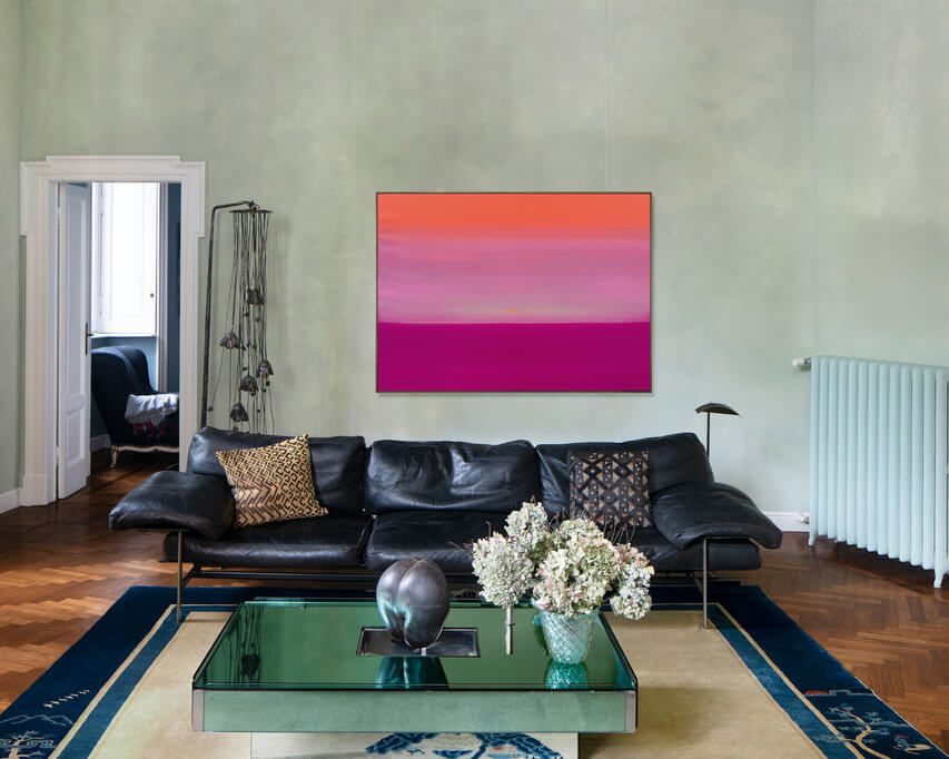 Yoab Vera is a Mexican artist who creates what he calls “haptic contemplative painting,” a practice that combines architecture, spirituality, and mindfulness. Celebrated for creating paintings that focus on the sea horizon as a meditation motif, he uses it to explore the flow of time, memory, and light. Inspired by the Emotional Architecture of Mexican modernists like Luis Barragán, his pastel-colored canvases stand out for their use of exposed concrete paired with traditional media like oil and oil stick, which he applies by hand in repetitive, horizontal motions that reflect his meditative practice.