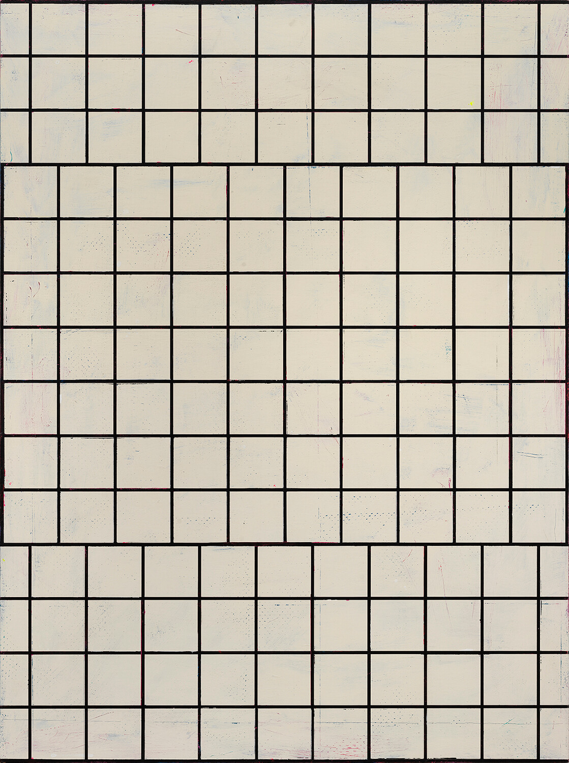 Paul Kremer (b. 1971, Chicago, IL) is an American artist known for his unique minimalist abstractions, which utilize traditional methods of painting with acrylics and gouache on canvas to create heavily formal compositions softened by the texture of their permeable support. Kremer’s work oscillates between digitally printed meditations on the internet and massive color field abstractions. Kremer is also known for having invented the now cult-followed social media account “Great Art in Ugly Rooms,” an internet phenomenon that presents shockingly realistic photo renderings of masterworks in laundromats, public restrooms, discount stores, and the like. For a span of twenty years, Kremer owned a graphic design studio and worked with renowned clients including Lou Reed, Tom Waits, PBS, and National Geographic. During this time, Kremer also co-founded the art collective “I Love You Baby,” a group of artists that held all-night painting parties from the 90s to the mid-aughts. A self-taught artist, Kremer’s works have garnered global recognition, being held in numerous collections and showcased in both solo and group exhibitions worldwide. He has been included in publications such as The New York Times, Interview Magazine, and Whitelies Magazine. His work is included in the collection of Birmingham Museum of Art, AL. Kremer lives and works in Houston, Texas.