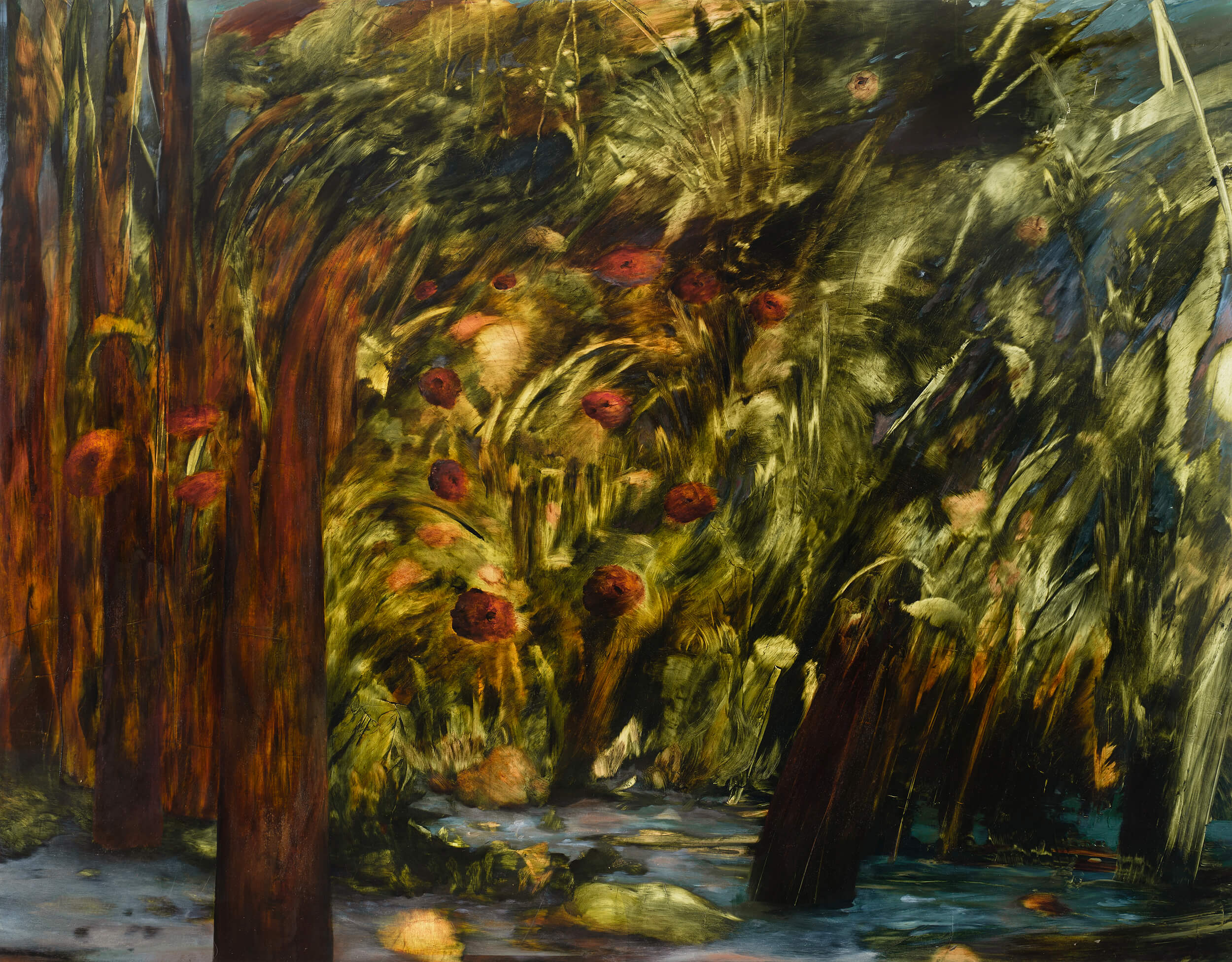 Peckenpaugh’s practice oscillates between destruction and creation: adding paint, wiping it away, and adding more on top. This ultimately is an act of creation that generates expansiveness and a politics of abundance where there is more than enough to go around. Here, wild spaces thrive, and infinitely receding landscapes are fertile with potential and growth. Continuing to evolve, Peckenpaugh fosters the creation of what she wants to see—wilderness, mischief, painting that is aware of itself, beauty—as the grass is greener where it’s watered. Titled Chosen Places, the scenes depicted in this exhibition are implied to be special because someone, perhaps the artist, has cultivated them to be so, taking elements from her past experiences to create new sensations of landscapes that slip into abstraction, or abstractions that slip into landscapes.